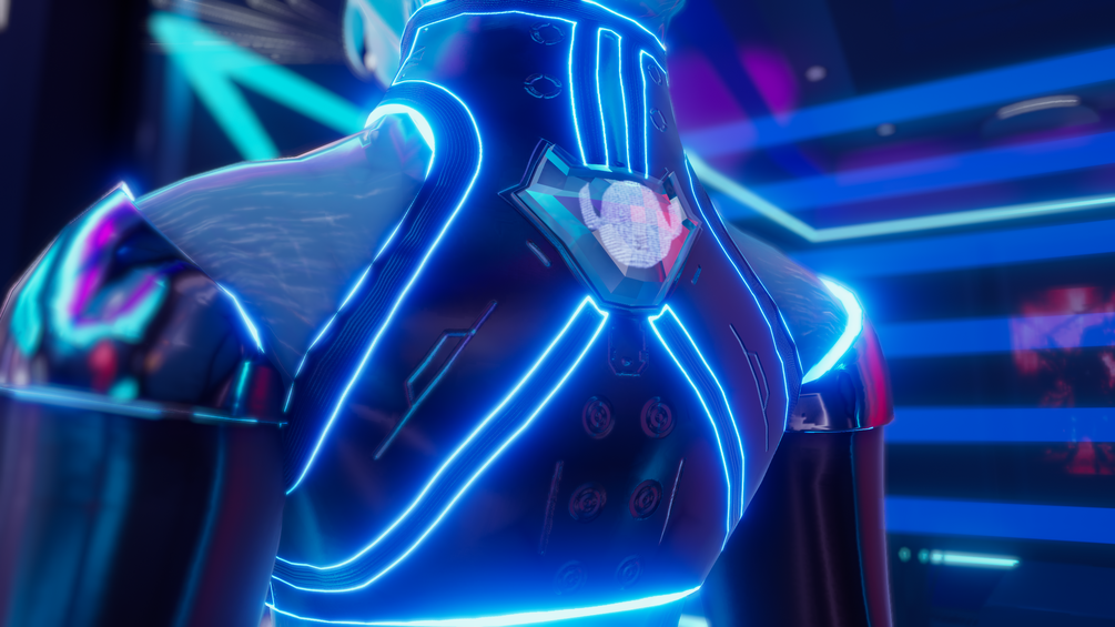 - Toggleable Arm Sleeves: Easily enable and disable stylish futuristic arm sleeves, terminating in a V-shaped single finger glove stemming from a metal neon ring.