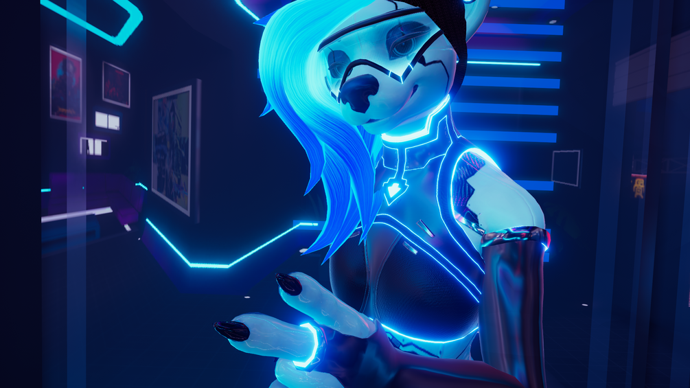 - Toggleable Arm Sleeves: Easily enable and disable stylish futuristic arm sleeves, terminating in a V-shaped single finger glove stemming from a metal neon ring.